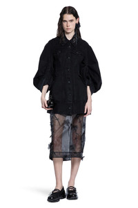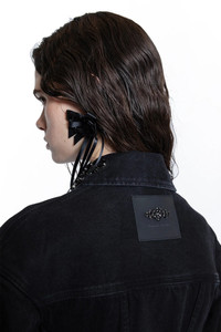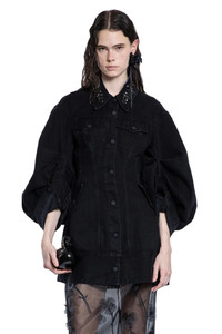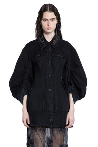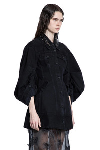 DESCRIPTION - Black - Washed mediumweight cotton denim - Collar with flower crystal embroideries - Button closure - Button flap chest pockets - Side press stud flap pockets - Dropped shoulders - Turn-up cuffs - Back beaded logo label - Sculptural silhouette DETAILS - Made in: Portugal - Composition: 100% Cotton - Model code: 6113B1239 BLACK - Item ID: 9521791598934 SIZE & FIT Model wears size 8 Model Height 181 cm Bust 83 cm Waist 57 cm Hips 88 cm