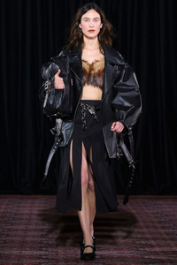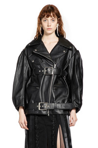 DESCRIPTION - Runway style - Black - Structured leather - Notched collar - Asymmetric zip closure - Chest press stud flap pocket - Side zipped pockets - 2 adjustable buckled belts - Signature puffed sleeves - Oversized fit DETAILS - Made in: Italy - Composition: 100% Bovine Leather - Model code: 61280457 BLK - Item ID: 9799782826326