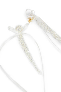 DESCRIPTION - Pearl white - Faux pearl daisy beads with drop - Satin bows - For pierced ears - Sold as pair DETAILS - Made in: Portugal - Composition: 67% Glass 25% Polyester 8% Brass - Model code: ERG410S0904 PEARL - Item ID: 9480074658134