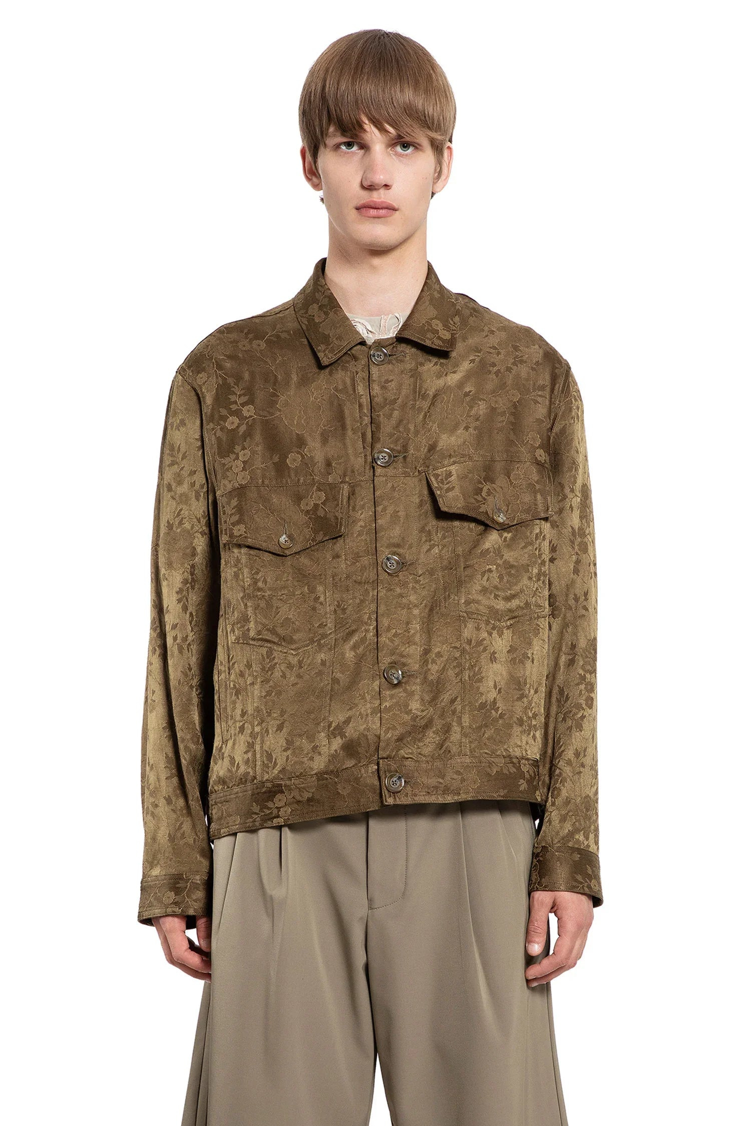 DESCRIPTION - Khaki - Floral jacquard - Collar - Button closure - Button flap chest pockets - Side pockets - Dropped shoulders - Buttoned cuffs - Back buttoned waist tabs - Boxy fit DETAILS - Made in: Australia - Composition: 52% Cupro 24% Rayon 24% Linen - Model code: 251MJK052 FLORKHA - Item ID: 9369245450582