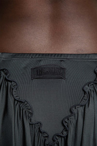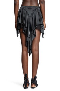 DESCRIPTION - Dark grey - Shiny jersey and georgette - Elasticated waistband - Spliced ruffled panel - Back logo label - Asymmetric hem - Draped DETAILS - Made in: Italy - Composition: 100% Viscose - Model code: 251WCR00145MIX060AA 233 - Item ID: 9726178132310 SIZE & FIT Model wears size 38 Model Height 180 cm Bust 77 cm Waist 57 cm Hips 97 cm