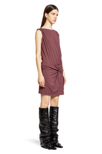 DESCRIPTION - Dark mauve - Stretch vicose jersey - Boat neck - Twisted ruched waistband - Sleeveless - Side split - Back embroidered monogram DETAILS - Made in: Italy - Composition: 95% Viscose 5% Elastane - Model code: 250WCA00396JJJ053AA 866 - Item ID: 9248532201814
