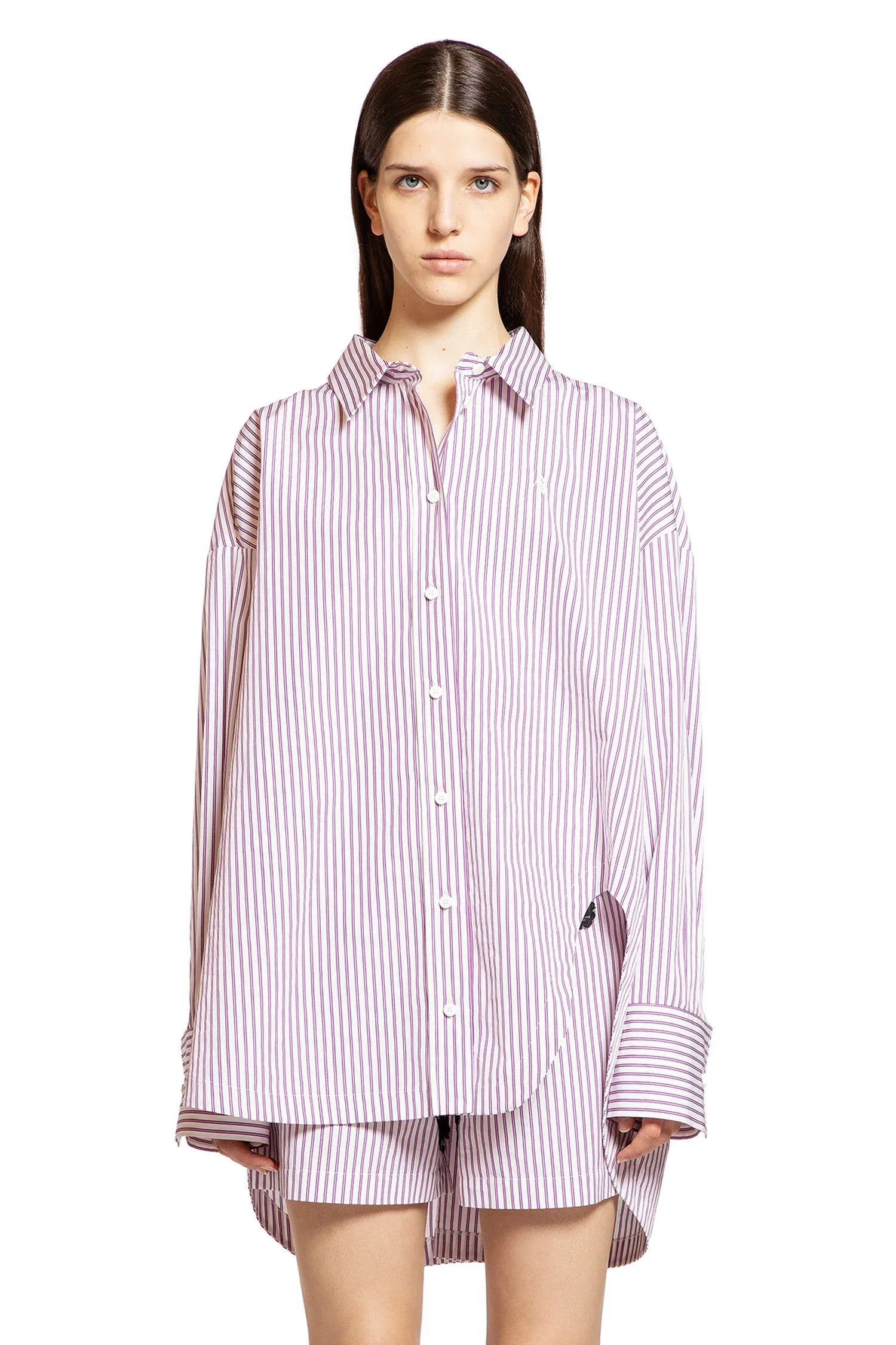 DESCRIPTION - Multicolor - White/purple - Striped cotton - Classic collar - Button closure - Dropped shoulders - Long sleeves - Buttoned cuffs - Back box pleat - Dropped back - Oversized fit DETAILS - Made in: Italy - Composition: 100% Cotton - Model code: 250WCH00004CCC054AA 871 - Item ID: 9248535642454
