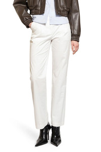 DESCRIPTION - Cream - Stretch cotton canvas - Belt holes - Hook and zip closure - Front small button flap pocket - Front pleats - Side pockets - Back buttoned pocket - Straight leg - Slim fit DETAILS - Made in: China - Composition: 97% Cotton 3% Elastane - Model code: 21062 001 - Item ID: 9273591955798