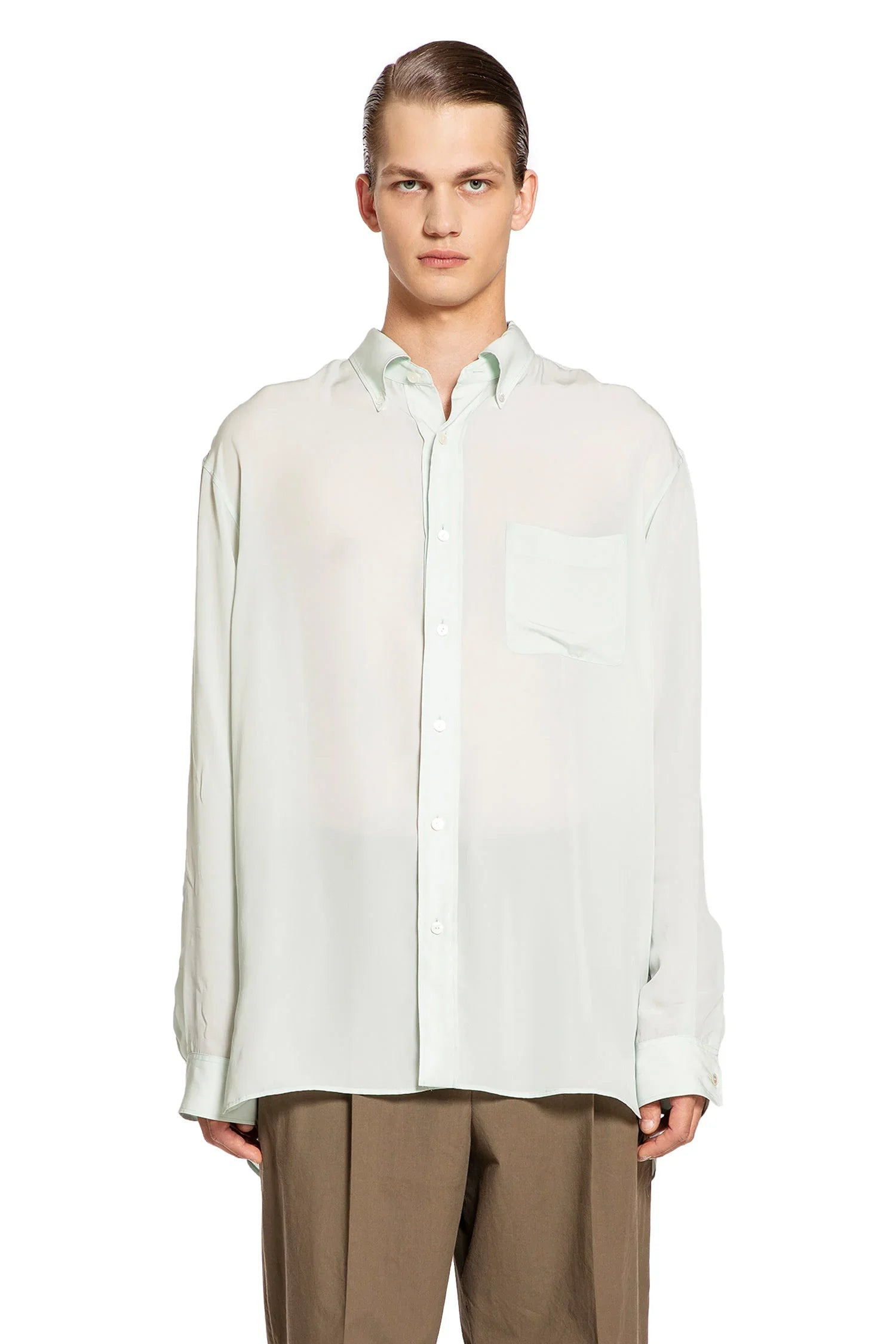 DESCRIPTION - Light sage - Silk chiffon - Classic collar - Button closure - Chest pocket - Dropped shoulders - Long sleeves - Buttoned cuffs DETAILS - Made in: Italy - Composition: 100% Silk - Model code: 916W3678 LSG - Item ID: 9618560713046