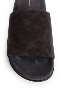 DESCRIPTION - Lacquer brown - Soft calfskin suede - Wide strap - Suede and rubber sole DETAILS - Made in: Italy - Composition: 100% Eelskin - Model code: F1660L302 LQB - Item ID: 9676894634326