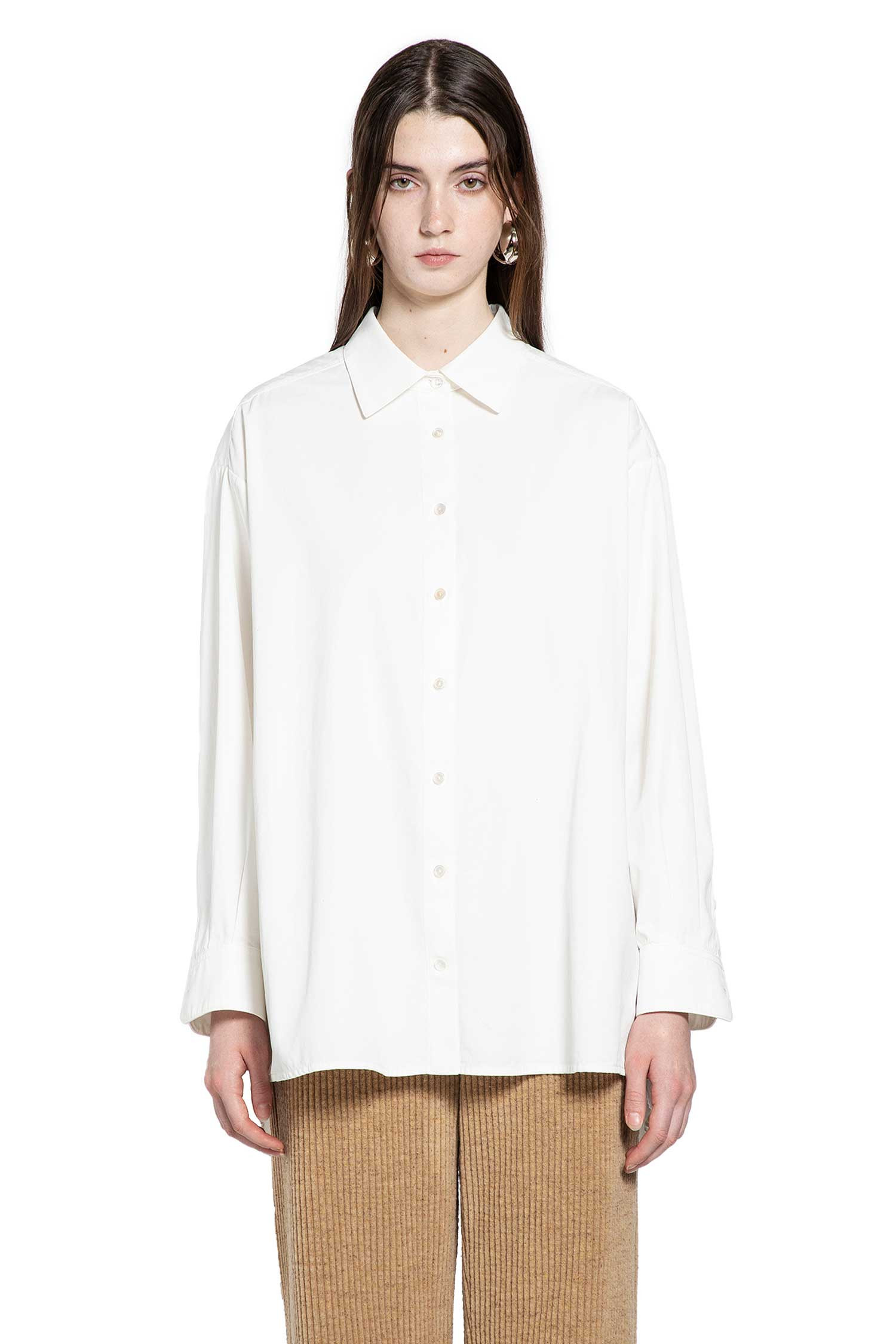 DESCRIPTION - White - Crisp cotton poplin - Classic collar - Button closure - Dropped shoulders - Long sleeves - Buttoned cuffs - Back box pleat - Curved hem - Menswear fit DETAILS - Made in: Italy - Composition: 100% Cotton - Model code: 5648W3670 WHT - Item ID: 9875348128086