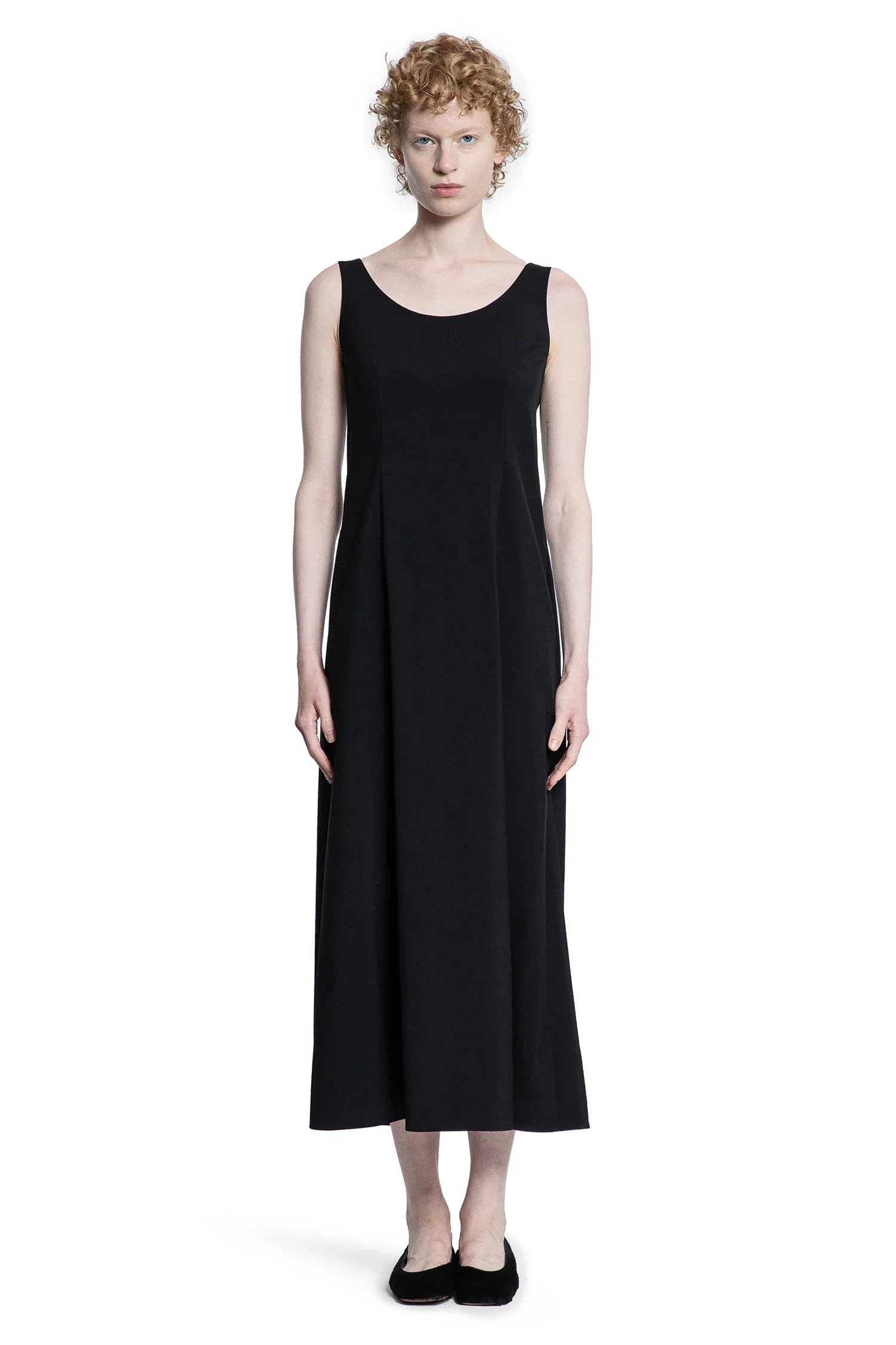 DESCRIPTION - Black - Wool tailoring - Scoop neck - Sleeveless - Back zip closure - A-line silhouette DETAILS - Made in: Italy - Composition: 100% Sheep Wool - Model code: 9059W3893 BLK - Item ID: 9658593247574 SIZE & FIT Model wears size 2 Model Height 180 cm Bust 82 cm Waist 58 cm Hips 90 cm