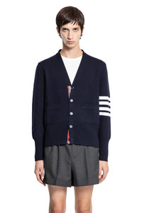 DESCRIPTION - Navy - Milano stitch knit - V-neck - Button closure with signature grosgrain placket - Front pockets - Dropped shoulders - Sleeve 4-bar stripe - Back signature grosgrain loop tab - Ribbed hem and cuffs DETAILS - Made in: Italy - Composition: 100% Virgin Wool - Model code: MKC160A00014 415 - Item ID: 9705757606230