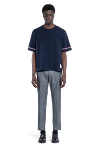 DESCRIPTION - Blue - Cotton jersey - Round neck - Side logo tag - Dropped shoulders - Short sleeves - Side split with signature striped plaquette - Dropped back - Back signature striped loop tab - Boxy fit DETAILS - Made in: Japan - Composition: 100% Cotton - Model code: MJS282AJ0199 415 - Item ID: 9391948955990 SIZE & FIT Model wears size 2 Model Height 190 cm Chest 87 cm Waist 73 cm Hips 88 cm