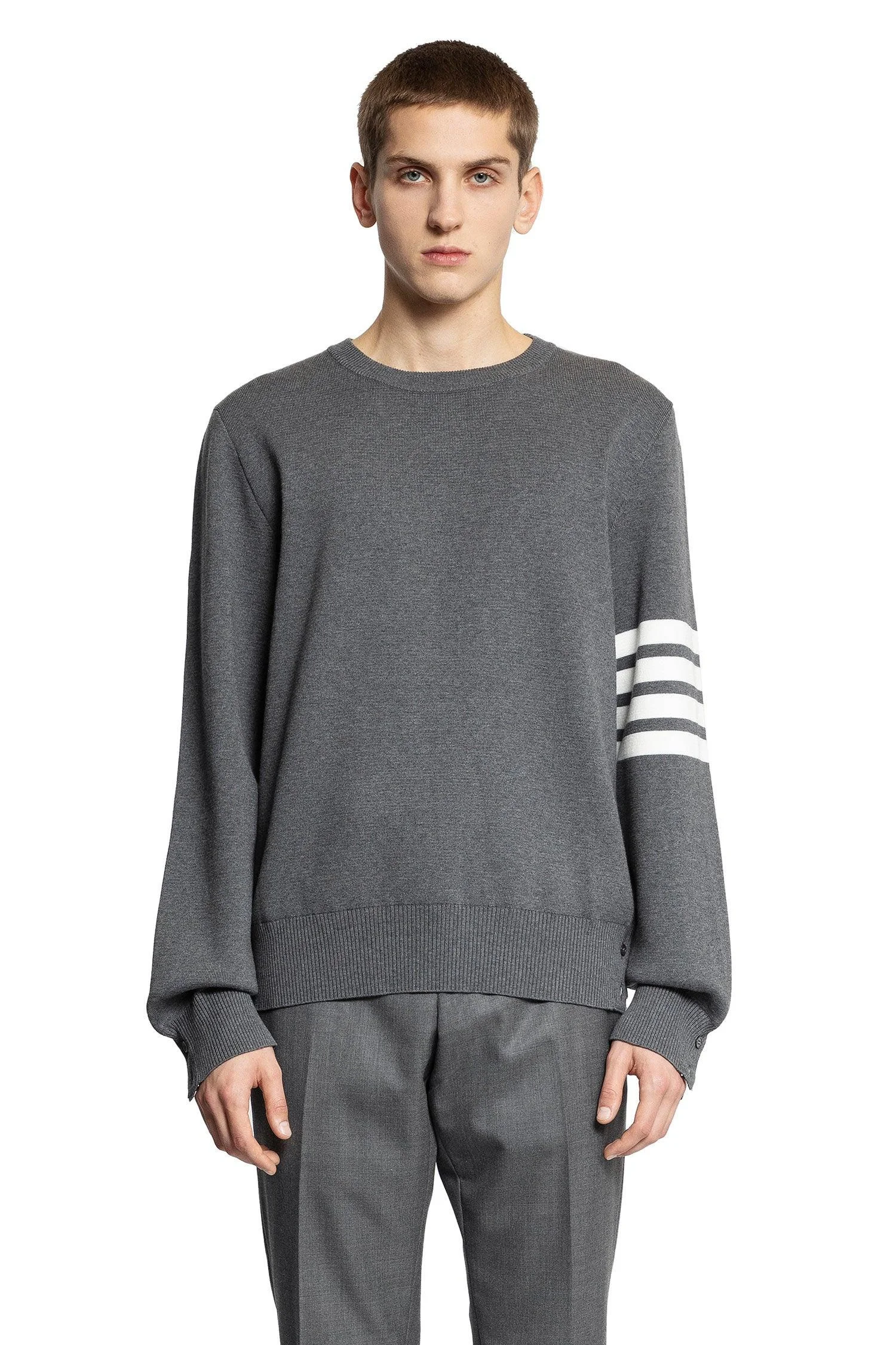 - Medium grey - Crewneck - Sleeve 4-bar stripe intarsia - Buttoned side splits with signature grosgrain placket - Buttoned cuffs with signature grosgrain placket - Back signature grosgrain loop tab - Ribbed hem and cuffs DETAILS - Made in: Italy - Composition: 100% Cotton - Model Code: MKA202A00219 035 - Item ID: 8478303551830 SIZE & FIT Model wears size lll Model Height 187 cm Chest 87 cm Waist 69 cm Hips 91 cm