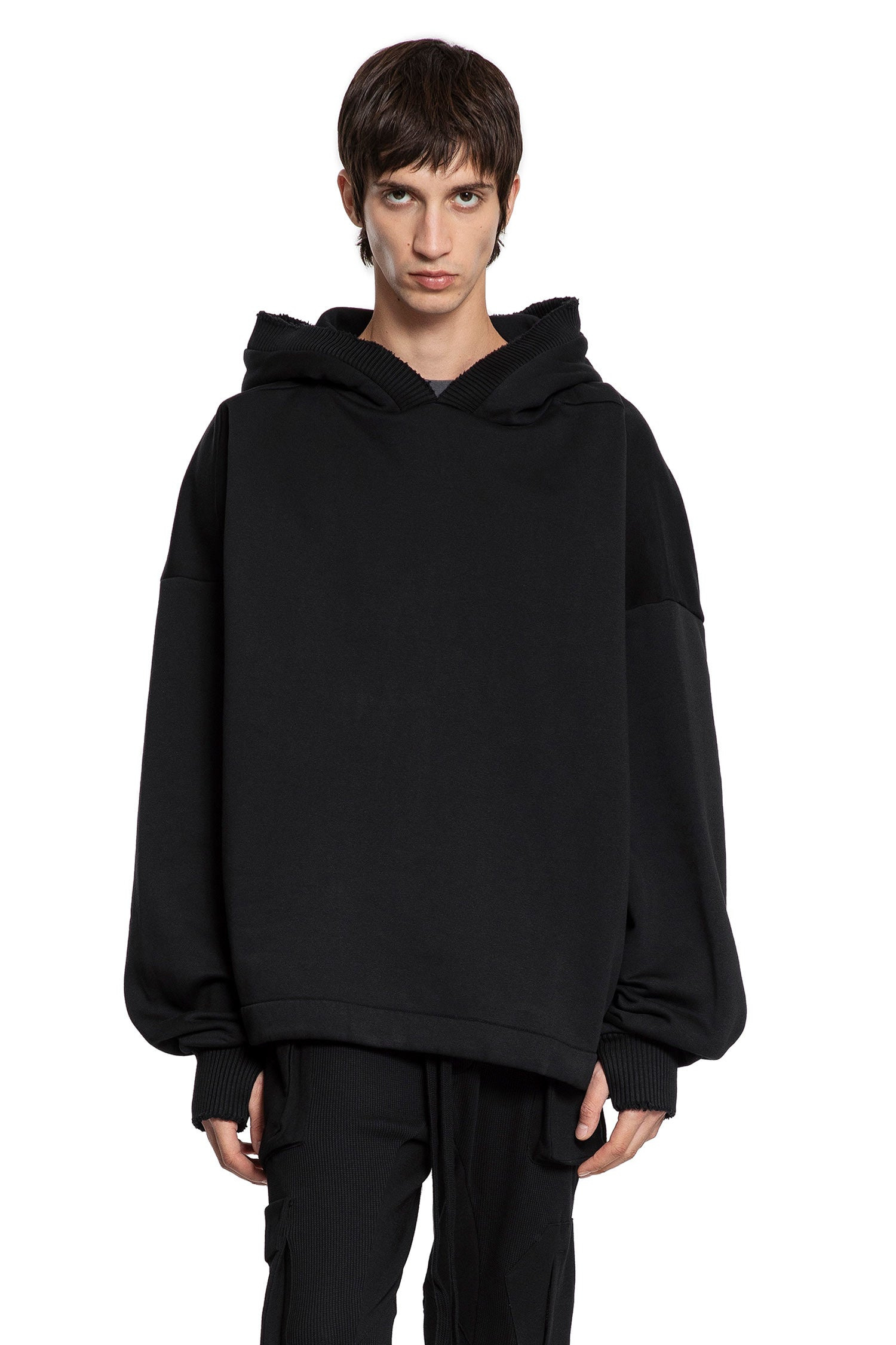DESCRIPTION - Black - Cotton jersey with frayed ribbed trim - Dropped shoulders - Ribbed cuffs with frayed ribbed trim - Back crossed signature stitching - Relaxed boxy fit DETAILS - Made in: Turkey - Composition: 88% Cotton 12% Polyester - Model code: MS186 BLACK - Item ID: 9711446982998 SIZE & FIT Model wears size M Model Height 186 cm Chest 89 cm Waist 72 cm Hips 90 cm