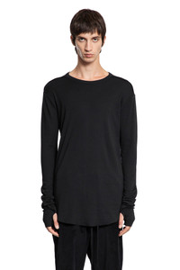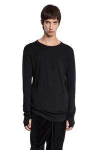 DESCRIPTION - Black - Lightweight cotton jersey - Round neck - Dropped shoulders - Cuffs with hand gaiters - Back crossed signature stitching - Curved raw-edge hem - Slim fit DETAILS - Made in: Turkey - Composition: 100% Cotton - Model code: MTS900 BLACK - Item ID: 9711449964886 SIZE & FIT Model wears size S Model Height 186 cm Chest 89 cm Waist 72 cm Hips 90 cm