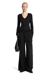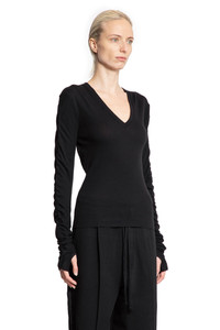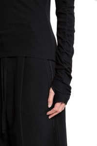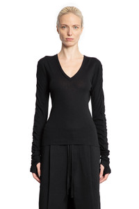 DESCRIPTION - Black - Lightweight cotton wool jersey - V-neck - Cuffs with hand gaiters - Back signature graphic embroidery - Fitted DETAILS - Made in: Turkey - Composition: 80% Cotton 20% Wool - Model code: WTS581 BLACK - Item ID: 9720453923158 SIZE & FIT Model wears size S Model Height 180 cm Bust 80 cm Waist 59 cm Hips 89 cm