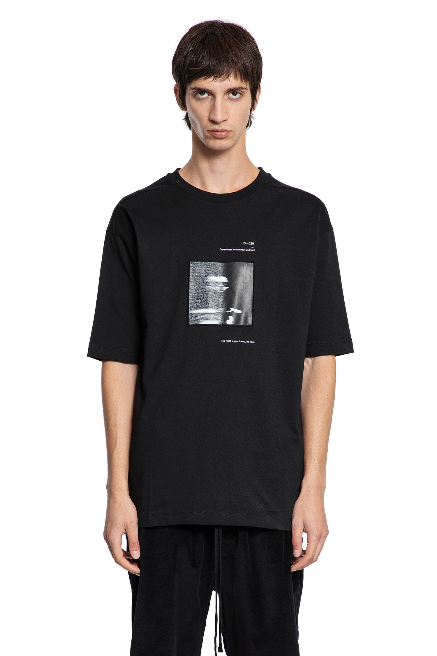 DESCRIPTION - Black - Cotton jersey - Round neck - Front printed graphic logo patch - Front printed d-029 graphic - Dropped shoulders - Short sleeves - Double-stitched hem and cuffs DETAILS - Made in: Turkey - Composition: 100% Cotton - Model code: MTS876 BLACK - Item ID: 9711448097110 SIZE & FIT Model wears size S Model Height 186 cm Chest 89 cm Waist 72 cm Hips 90 cm