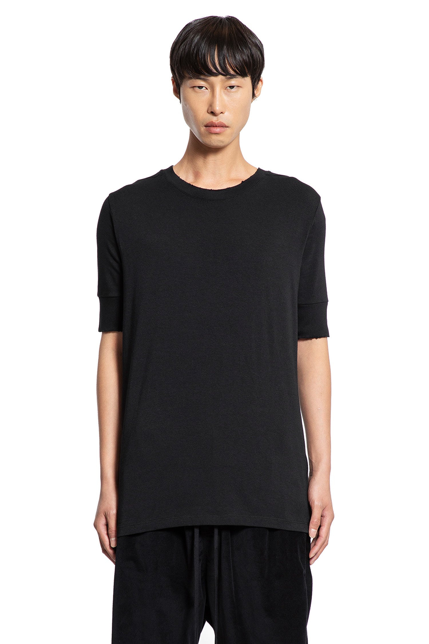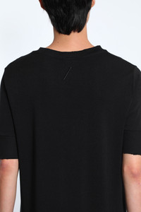 DESCRIPTION - Black - Stretch cotton modal jersey - Distressed details - Round neck - Short sleeves - Ribbed cuffs - Back embroidered logo DETAILS - Made in: Turkey - Composition: 47% Cotton 47% Modal 6% Elastane - Model code: MTS903 BLACK - Item ID: 9748181221718 SIZE & FIT Model wears size S Model Height 188 cm Chest 88 cm Waist 69 cm Hips 88 cm