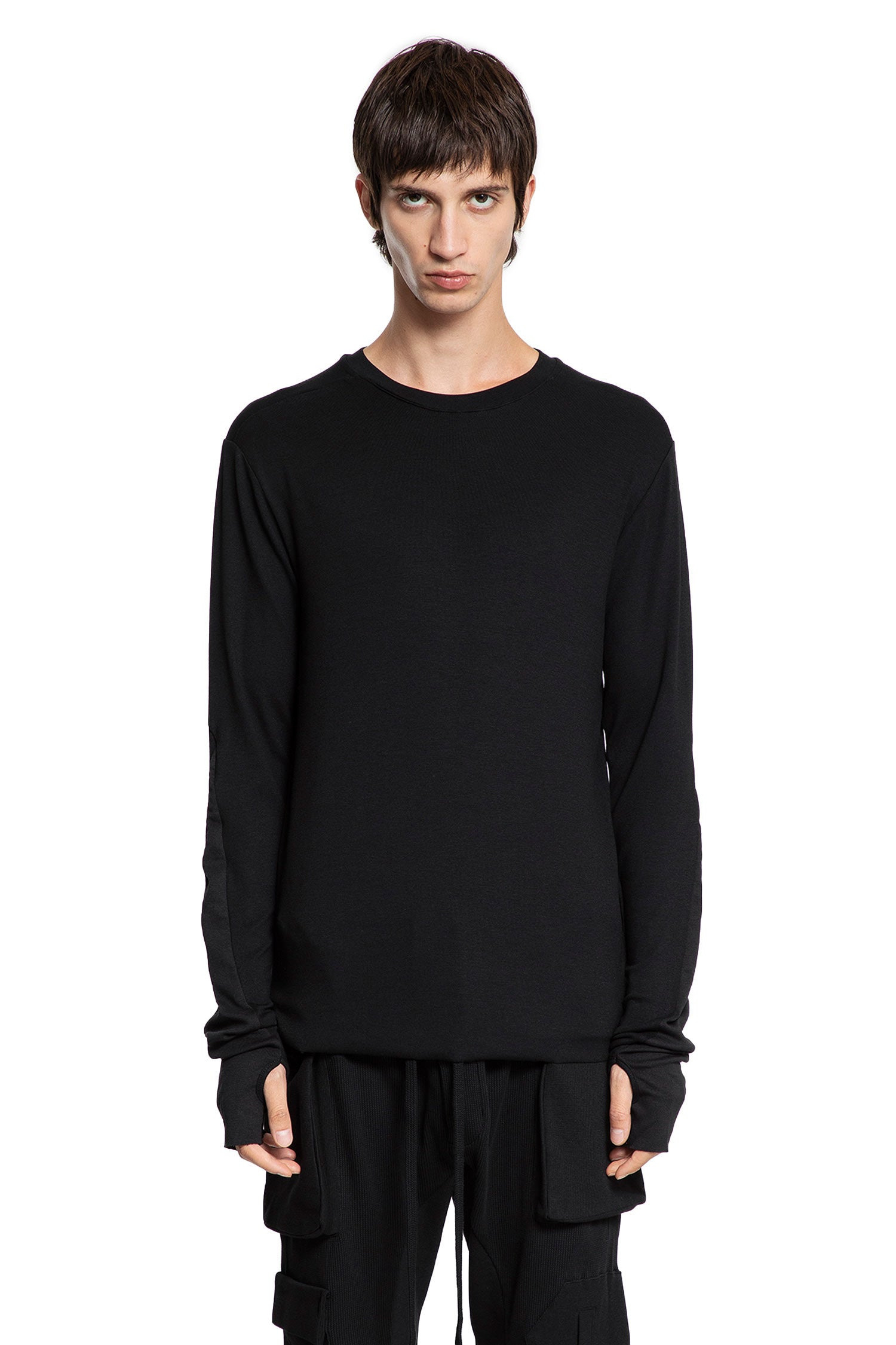 DESCRIPTION - Black - Lightweight cotton jersey - Round neck - Long sleeves - Ribbed cuffs with hand gaiters - Back cotton jersey shoulder yoke - Back embroidered logo - Raw-edge hem - Slim fit DETAILS - Made in: Turkey - Composition: 95% Viscose 5% Elastane - Model code: MTS889 BLACK - Item ID: 9711448719702 SIZE & FIT Model wears size S Model Height 186 cm Chest 89 cm Waist 72 cm Hips 90 cm