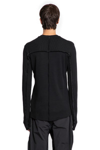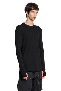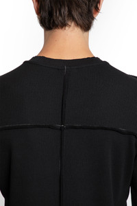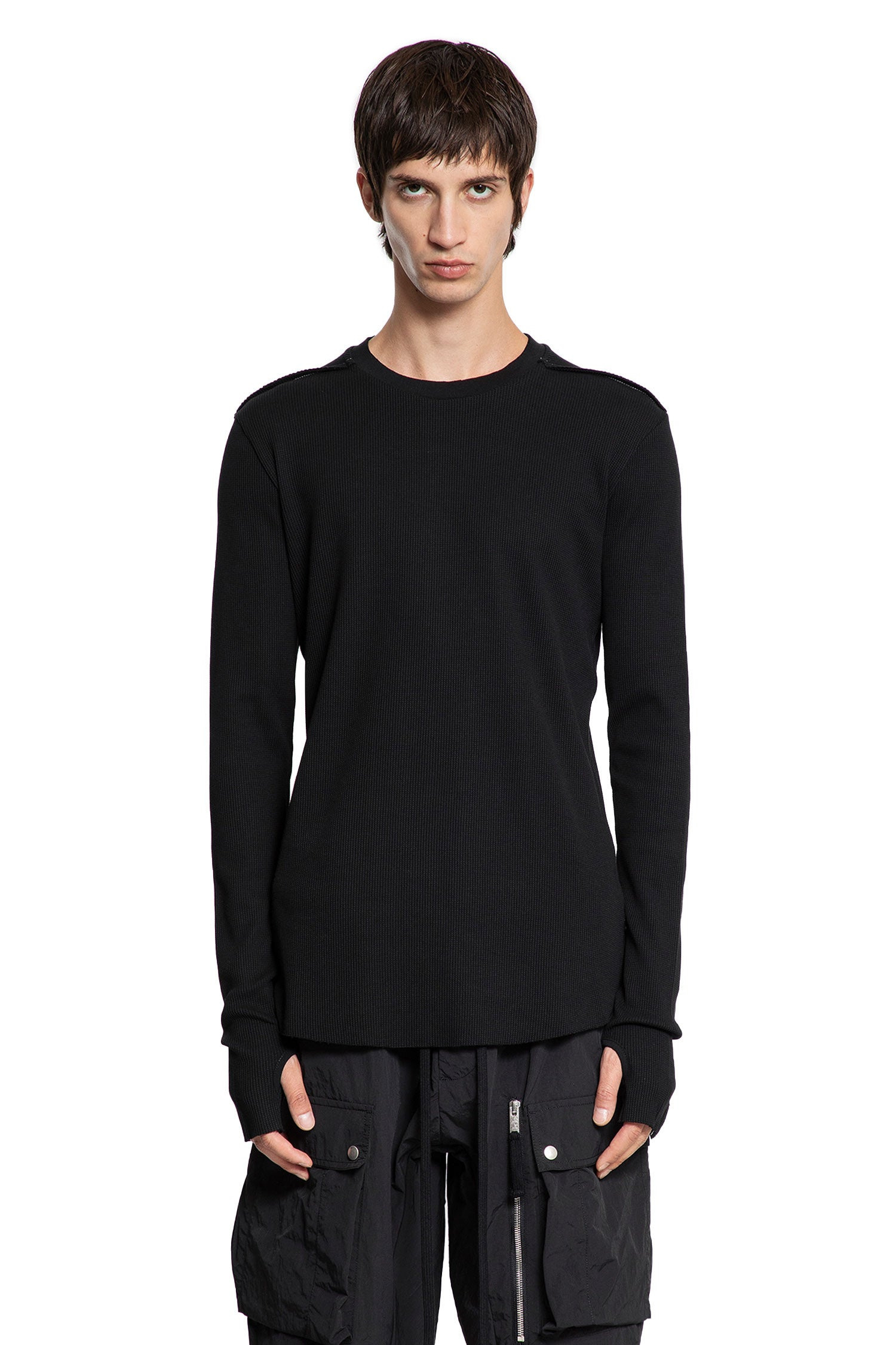 DESCRIPTION - Black - Stretch lightweight Waffle Jersey - Round neck - Raised signature contrast shoulder stitching - Dropped shoulders - Long sleeves - Ribbed cuffs - Back raised signature contrast stitching - Raw-edge hem and cuffs - Slim fit DETAILS - Made in: Turkey - Composition: 97% Cotton 3% Elastane - Model code: MTS898 BLACK - Item ID: 9711449637206 SIZE & FIT Model wears size S Model Height 186 cm Chest 89 cm Waist 72 cm Hips 90 cm