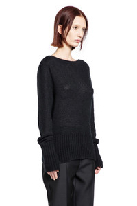 DESCRIPTION - Black - Soft cashmere silk knit - Boat neck - Dropped shoulders - Ribbed hem and cuffs - Boxy ft DETAILS - Made in: Italy - Composition: 74% Cashmere 26% Silk - Model code: MAK1380YAX921 LB999 - Item ID: 9882640449878