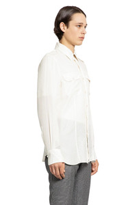 DESCRIPTION - Ivory - Semi-sheer cotton silk - Classic collar - Epaulettes - Button closure - Button flap chest pockets - Long sleeves - Buttoned cuffs - Regular fit DETAILS - Made in: Italy - Composition: 63% Cotton 37% Silk - Model code: HME004FMC145F24 AW004 - Item ID: 9273433784662