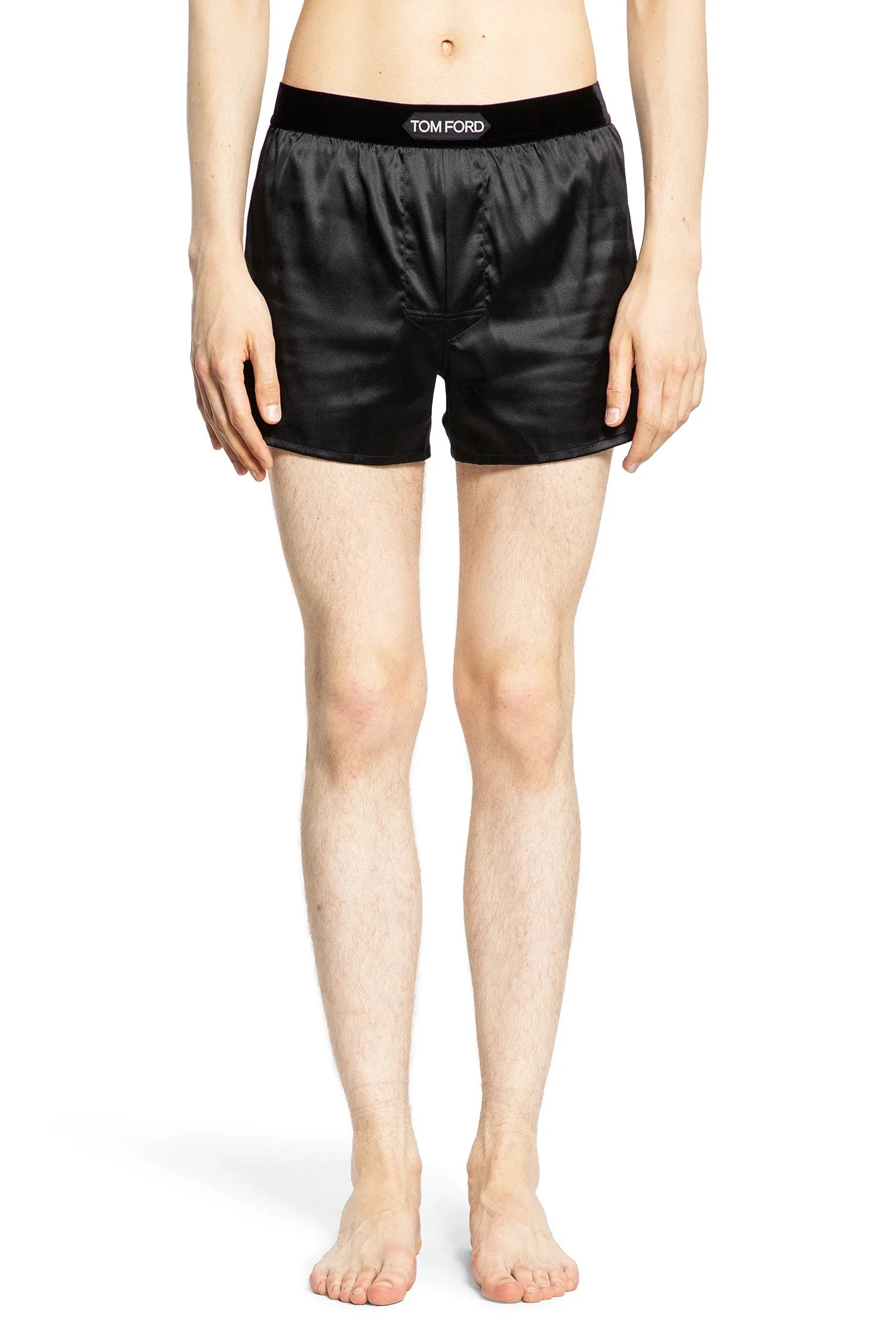 DESCRIPTION - Black - Elastic Velvet Waistband With Logo Label - Classic Fit DETAILS - Made in: Italy - Composition: 93% Silk 7% Elastane - Model code: T4LE41010 002 - Item ID: 7444179648690 SIZE & FIT Model wears size XS Model Height 190 cm Bust 90 cm Waist 68 cm Hips 94 cm