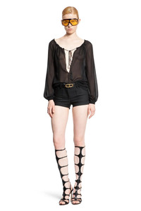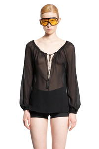 DESCRIPTION - Black - Silk georgette - Gathered drawstring scoop neck with tassels - Deep plunging v-neck - Long puffed sleeves - Buttoned cuffs DETAILS - Made in: Italy - Composition: 100% Silk - Model code: TS2091FAX852 LB999 - Item ID: 9273437028694