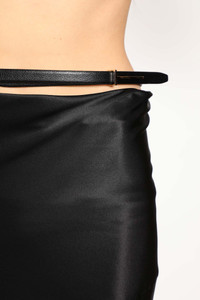 DESCRIPTION - Runway style - Black - Silk satin - Adjustable grained leather belt - Bias cut - Asymmetric hem - Floor length DETAILS - Made in: Italy - Composition: 100% Silk - Model code: GC5828FAX1664 LB999 - Item ID: 9824082526550 SIZE & FIT Model wears size 38 Model Height 177 cm Bust 76 cm Waist 58 cm Hips 86 cm