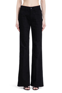 DESCRIPTION - Black - Stretch denim - Belt holes - Button and zip closure - 5 pockets - Leg crease - Back leather logo label - Wide leg - Flared fit DETAILS - Made in: Italy - Composition: 100% Cotton - Model code: PAD123DEX224 LB999 - Item ID: 9525132656982 SIZE & FIT Model wears size 26 Model Height 181 cm Bust 83 cm Waist 57 cm Hips 88 cm