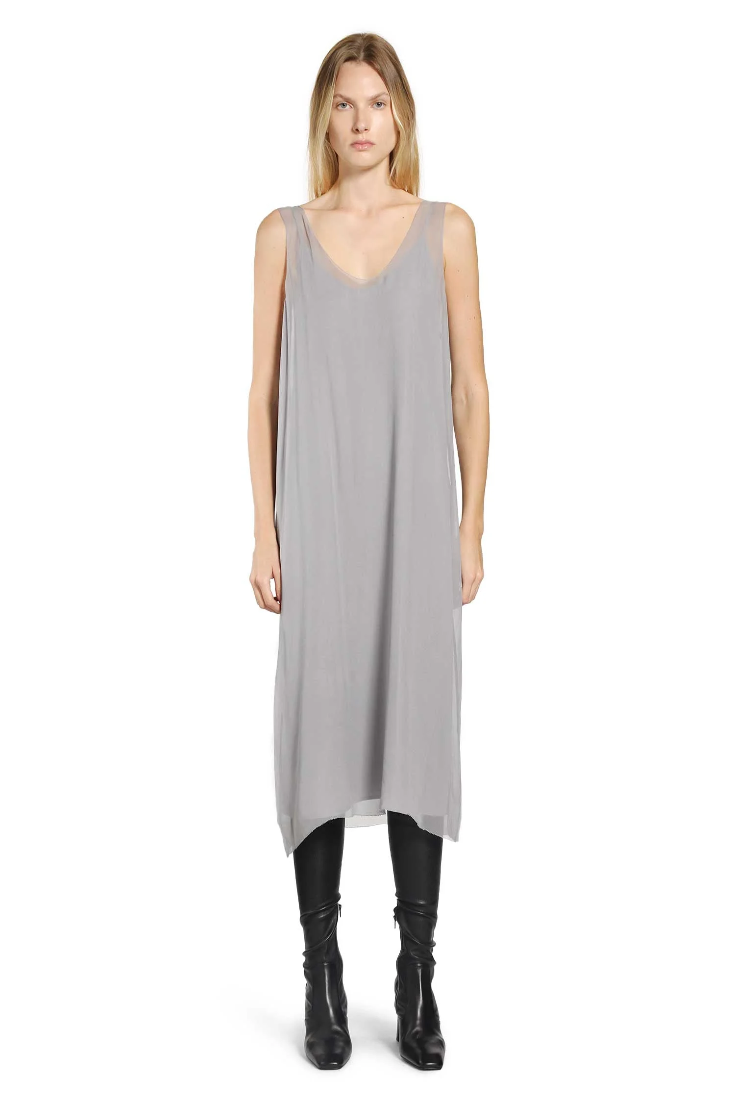 DESCRIPTION - Light grey - Layered silk chiffon - Scoop neck - Sleeveless - Asymmetric raw-edge hem - Straight fit DETAILS - Made in: China - Composition: 100% Silk - Model code: 254WRD0224FB0487 121 - Item ID: 9854069506390