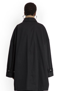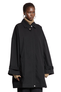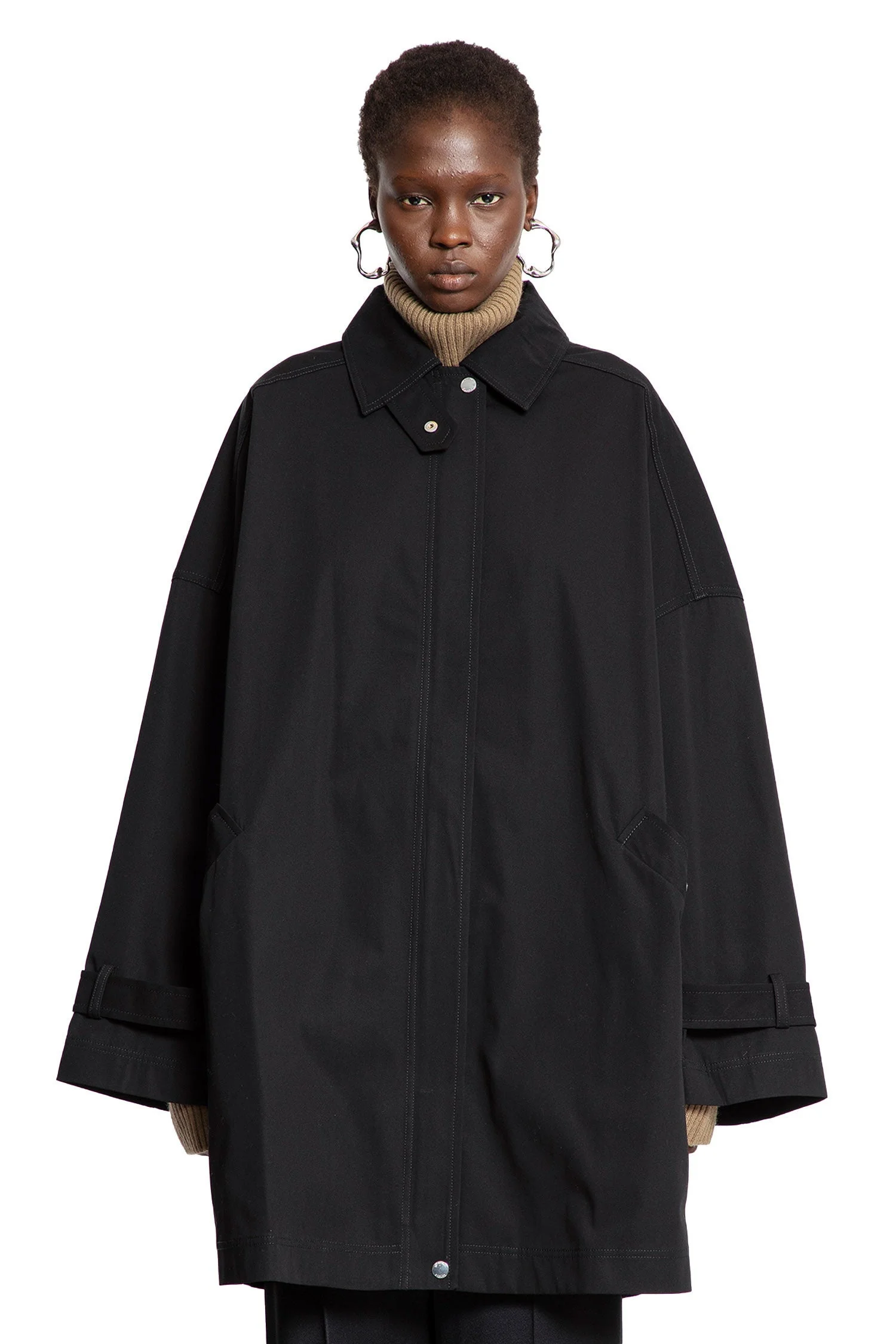 DESCRIPTION - Black - Midweight organic cotton canvas - Collar with throat latch - Concealed press stud and zip closure - Press stud side pockets - Dropped shoulders - Buttoned cuff tabs - Relaxed fit - A-line silhouette DETAILS - Made in: Lithuania - Composition: 100% Cotton - Model code: 253WRO0220FB0490 001 - Item ID: 9706229465430 SIZE & FIT Model wears size 36 Model Height 180 cm Bust 77 cm Waist 57 cm Hips 97 cm