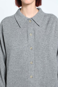 DESCRIPTION - Grey melange - Soft lightweight cashmere knit - Collar - Button closure - Raglan sleeves - Buttoned cuffs - Relaxed fit DETAILS - Made in: China - Composition: 100% Cashmere - Model code: 243WRT0347YA0016 074 - Item ID: 9765180244310