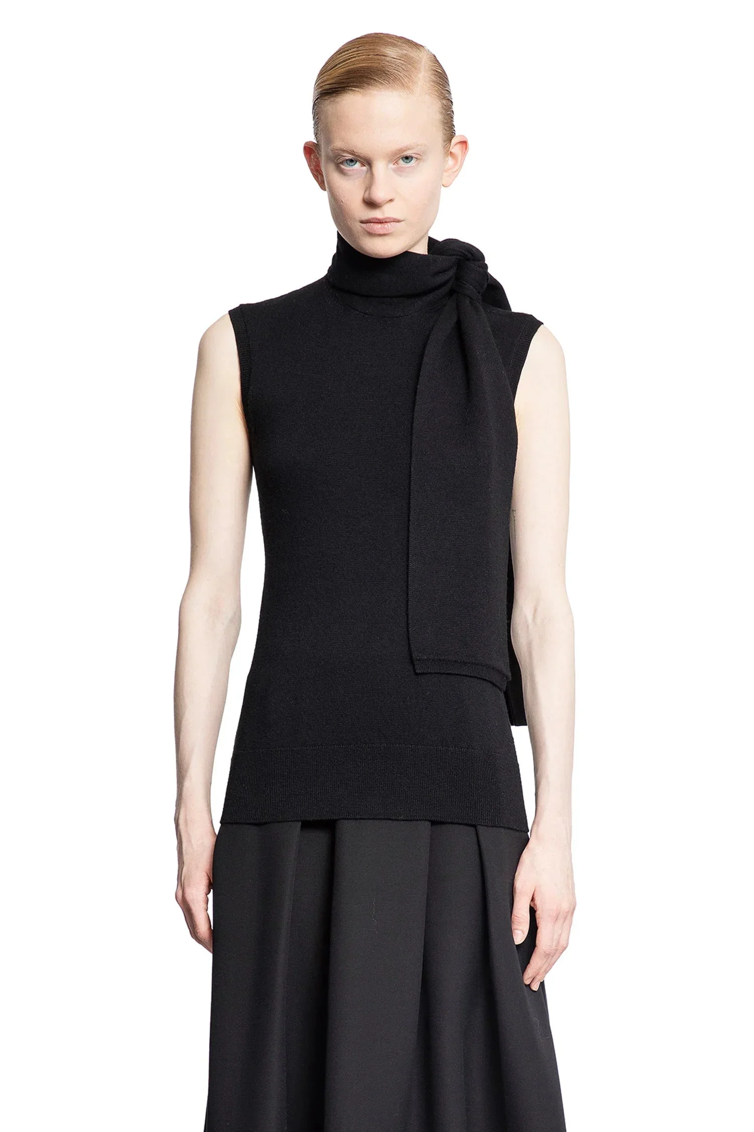 DESCRIPTION - Black - Self-tie scarf collar - Sleeveless - Ribbed hem - Fitted DETAILS - Made in: China - Composition: 92% Virgin Wool 8% Polyamide - Model code: 251WRT4388YA0133 001 - Item ID: 9300938162518 SIZE & FIT Model wears size S Model Height 180 cm Bust 82 cm Waist 58 cm Hips 90 cm