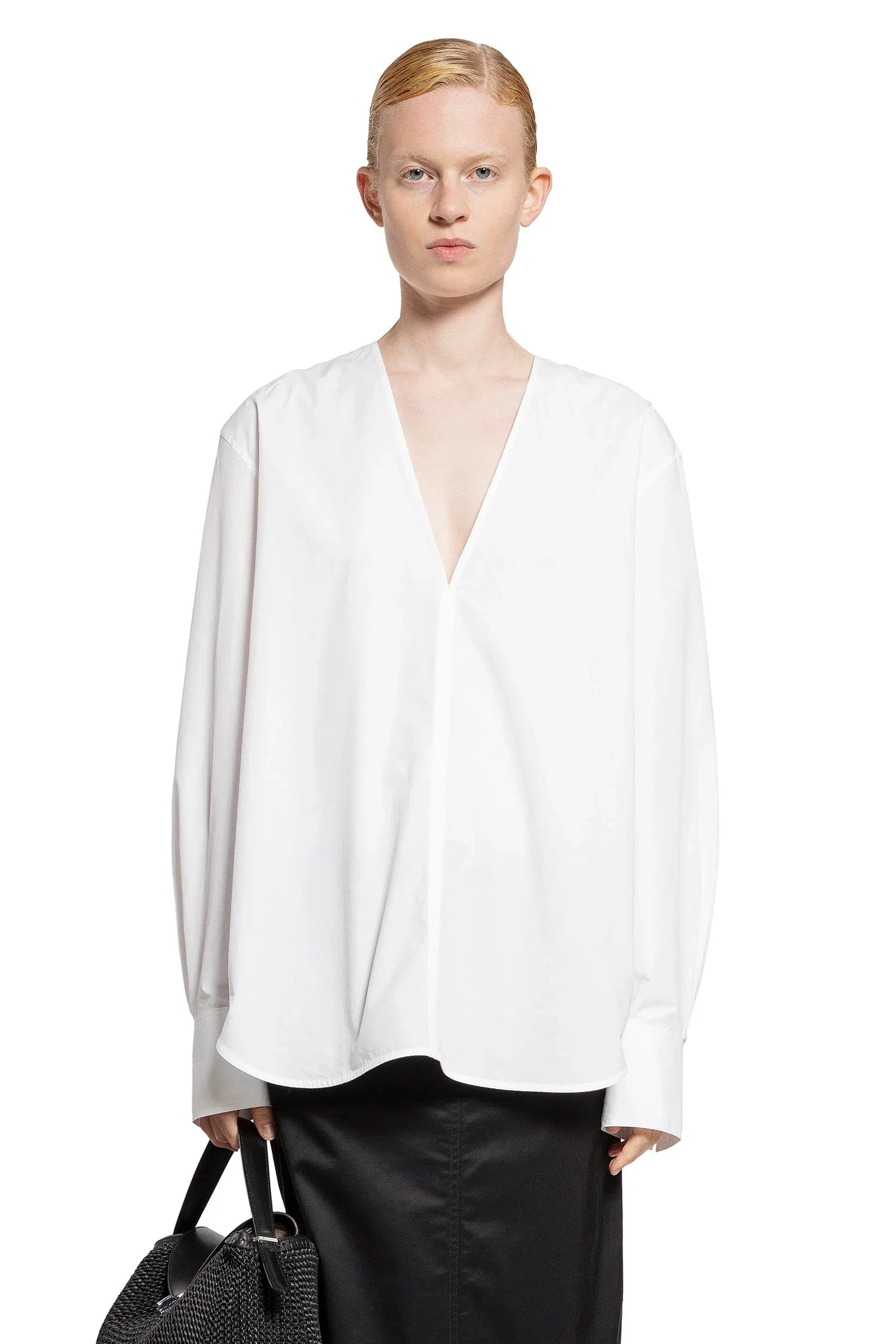 DESCRIPTION - White - Cotton twill - V-neck - Dropped shoulders - Long sleeves - Buttoned cuffs - Back box pleat - Relaxed fit DETAILS - Made in: Turkey - Composition: 100% Cotton - Model code: 252WRT0503FB0119 047 - Item ID: 9448528707926 SIZE & FIT Model wears size 34 Model Height 180 cm Bust 82 cm Waist 58 cm Hips 90 cm