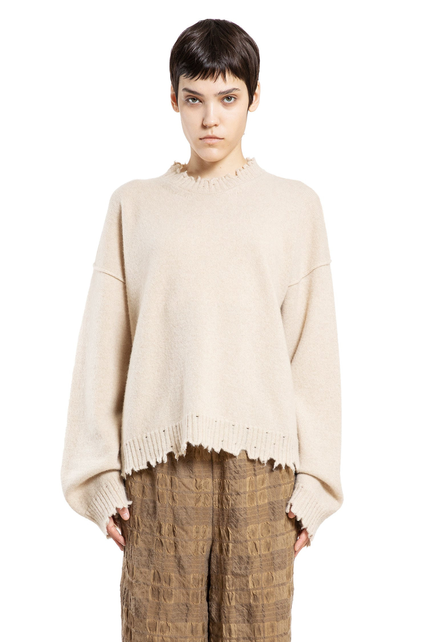 DESCRIPTION - Tan - Cashmere knit - Distressed details - Frayed crewneck - Dropped shoulders - Ribbed hem and cuffs - Relaxed boxy fit DETAILS - Made in: Italy - Composition: 100% Cashmere - Model code: UK7152 UW200 - Item ID: 9882351010134