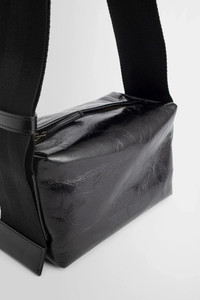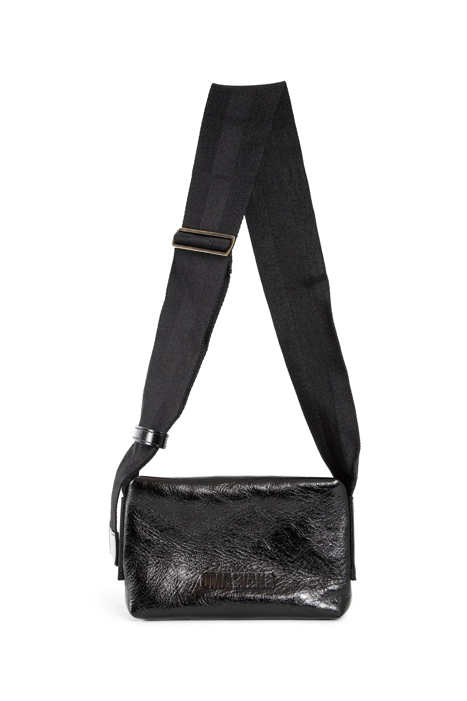 DESCRIPTION - Uma Wang women's black Small leather Shoulder Bag - - black - - front logo embossed - - adjustable webbing shoulder strap - - zip closure - - 100% calfskin - - made in Italy DETAILS - Made in: Italy - Composition: 100% Calfskin - Model code: UB0032 UW900 - Item ID: 8525643546966