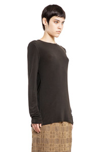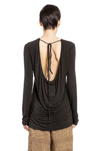 DESCRIPTION - Brown - Stretch lightweight modal jersey - Round neck - Dropped shoulders - Long sleeves - Back self-tie straps - Back signature stitching - Draped open back - Elongated hem DETAILS - Made in: Italy - Composition: 93% Modal 7% Elastane - Model code: UP1038 UW600 - Item ID: 9882353402198