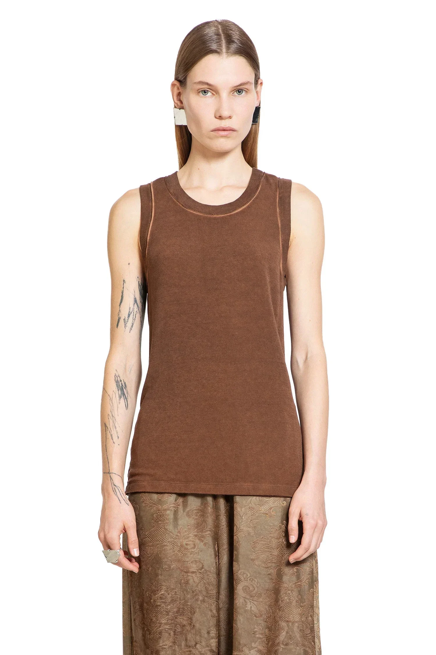 DESCRIPTION - Multicolor - Brown/rose - Stretch viscose jersey - Scoop neck - Sleeveless - Racer back - Back signature seam - Back signature stitching - Fitted DETAILS - Made in: Italy - Composition: 98% Viscose 2% Elastane - Model code: UW1030 UW065 - Item ID: 9404232270166