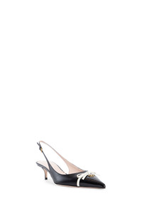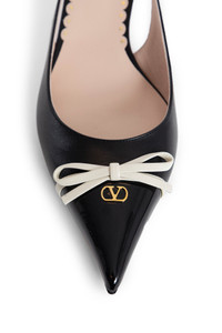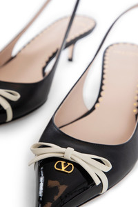 DESCRIPTION - Black - Smooth leather and patent leather - Adjustable buckled slingback strap - Front leather bow - Front gold-metal vlogo - Pointed toe - Kitten heel - Leather sole DETAILS - Made in: Italy - Composition: 100% Calfskin - Model code: 6W2S0LL3DAL 790 - Item ID: 9427836830038