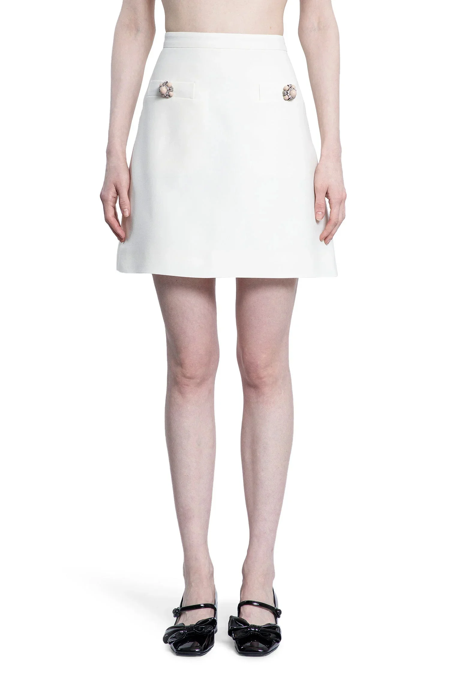 DESCRIPTION - Ivory - Crepe Couture - High-waisted - Front jewel-buttoned pockets - Flared cut DETAILS - Made in: Italy - Composition: 65% Virgin Wool 35% Silk - Model code: 6B3RACH71CF A03 - Item ID: 9365887418710 SIZE & FIT Model wears size 42 Model Height 180 cm Bust 82 cm Waist 58 cm Hips 90 cm