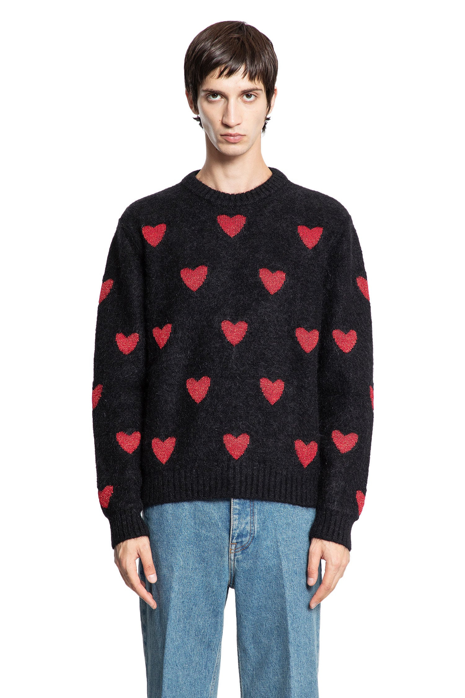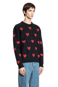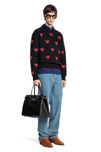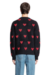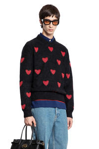 DESCRIPTION - Multicolor - Black/red - Mohair And Lurex heart jacquard knit - Crewneck - Dropped shoulders - Ribbed hem and cuffs - Loose fit DETAILS - Made in: Italy - Composition: 71% Wool 16% Mohair 7% Polyamide 4% Viscose 2% Metallic fibre - Model code: 7V3KC34QB0T 0NR - Item ID: 9705748988246