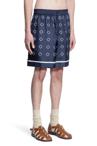 DESCRIPTION - Indigo - Opticool print - Silk twill - Elastic waistband with drawstrings - Side pockets - Back pocket - Relaxed fit DETAILS - Made in: Italy - Composition: 100% Silk - Model code: 6V0RDE38ATN 9SE - Item ID: 9582483734870 SIZE & FIT Model wears size 50 Model Height 186 cm Chest 89 cm Waist 72 cm Hips 93 cm
