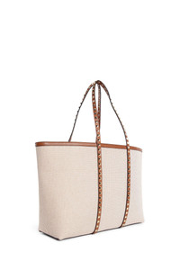 DESCRIPTION - Multicolor - Natural/tobacco - Cotton canvas - Leather trim - Rockstud details - Leather handles - Zip closure - Internal zipped leather pouch DETAILS - Made in: Italy - Composition: 100% Cotton 100% Calfskin - Model code: 6W2B0R04QCE RDV - Item ID: 9461831958870
