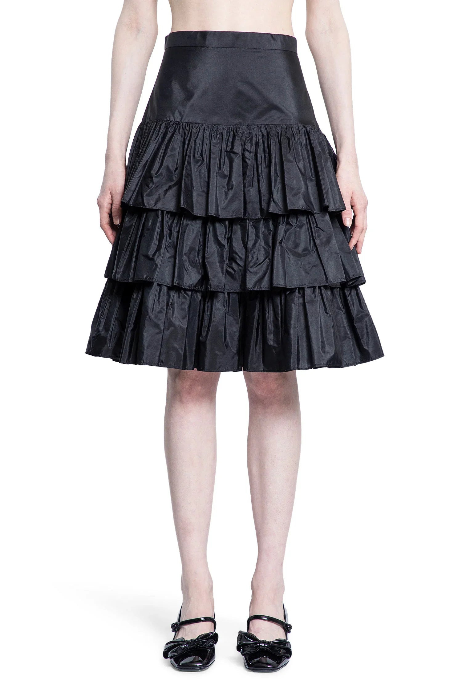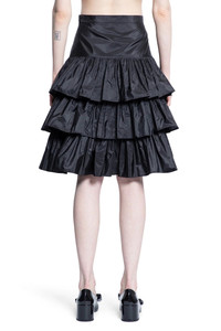 DESCRIPTION - Runway style - Black - Silk taffeta - High-waisted - Concealed side zip closure - Tiered ruffles - Flared fit DETAILS - Made in: Italy - Composition: 100% Silk - Model code: 6B3RACH1917 0NO - Item ID: 9365887222102 SIZE & FIT Model wears size 42 Model Height 180 cm Bust 82 cm Waist 58 cm Hips 90 cm