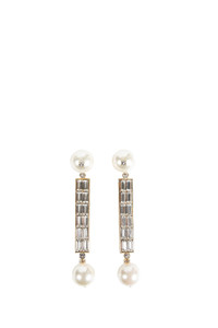 DESCRIPTION - Multicolor - Gold-metal/cream/crystal - Metal, faux Pearls and Swarovski Crystals - Round and baguette Swarovski crystals - Openwork back - Faux pearl with Swarovski crystals and - Parisian points - Clip and pin closure - Sold as pair - For pierced ears DETAILS - Made in: Italy - Composition: 100% Swarovski Crystals 100% Brass 100% Resin - Model code: 7W2J0AP0HJY CNP - Item ID: 9766636061014