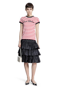 DESCRIPTION - Multicolor - Red/white - Striped cotton jersey - Round neck - Front chez valentino print - Short sleeves - Slim fit DETAILS - Made in: Italy - Composition: 100% Cotton - Model code: 6B3MG24P961 AS0 - Item ID: 9463175577942 SIZE & FIT Model wears size S Model Height 176 cm Bust 82 cm Waist 59 cm Hips 88 cm