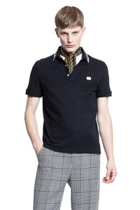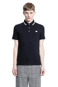 DESCRIPTION - Black and white - Cotton pique - Tipped collar - Quarter-button closure - Chest embroidered VLogo patch - Short sleeves - Regular fit DETAILS - Made in: Italy - Composition: 100% Cotton - Model code: 6V3MH01KAQK 0NO - Item ID: 9349249597782 SIZE & FIT Model wears size S Model Height 187 cm Chest 90 cm Waist 73 cm Hips 92 cm