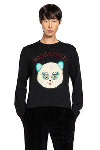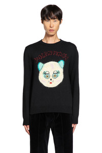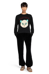 DESCRIPTION - Black - Wool cotton knit - Crewneck - Front signature le chat de la maison graphic - jacquard - Dropped shoulders - Back ''Le Chat de la maison'' jacquard - Ribbed hem and cuffs - Regular fit DETAILS - Made in: Italy - Composition: 65% Cotton 35% Wool - Model code: 7V3KC35IB2V 0NO - Item ID: 9770318332246 SIZE & FIT Model wears size S Model Height 188 cm Chest 88 cm Waist 69 cm Hips 88 cm