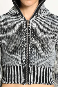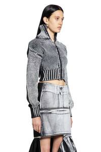 DESCRIPTION - Runway style - Black and white - Cunky wool nylon knit - Painted front - High-neck - Zip closure - Dropped shoulders - Ribbed hem and cuffs - Cropped hem - Slim fit DETAILS - Made in: Italy - Composition: 76% Cotton 24% Polyamide - Model code: VAQ10N005 BLACKWHITE - Item ID: 9824081084758 SIZE & FIT Model wears size S Model Height 177 cm Bust 76 cm Waist 58 cm Hips 86 cm
