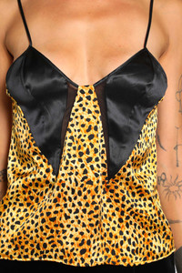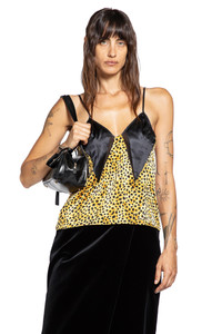DESCRIPTION - Multicolor - Animalier - Silk satin - Cheetah Allover print - V-neckline - Adjustable shoulder straps DETAILS - Made in: Italy - Composition: 100% Silk - Model code: 10221431A16329 5X780 - Item ID: 9782236414294 SIZE & FIT Model wears size 2 Model Height 175 cm Bust 82 cm Waist 68 cm Hips 93 cm