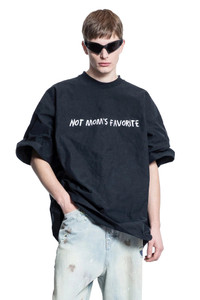 DESCRIPTION - Black - Metallised wrinkled cotton jersey - Round neck - Front ''Not mom's favourite'' print - Dropped shoulders - Back embroidered logo - Oversized fit DETAILS - Made in: Portugal - Composition: 100% Cotton - Model code: UA66TR100B BLACK - Item ID: 9364057882966 SIZE & FIT Model wears size M Model Height 187 cm Chest 90 cm Waist 73 cm Hips 92 cm
